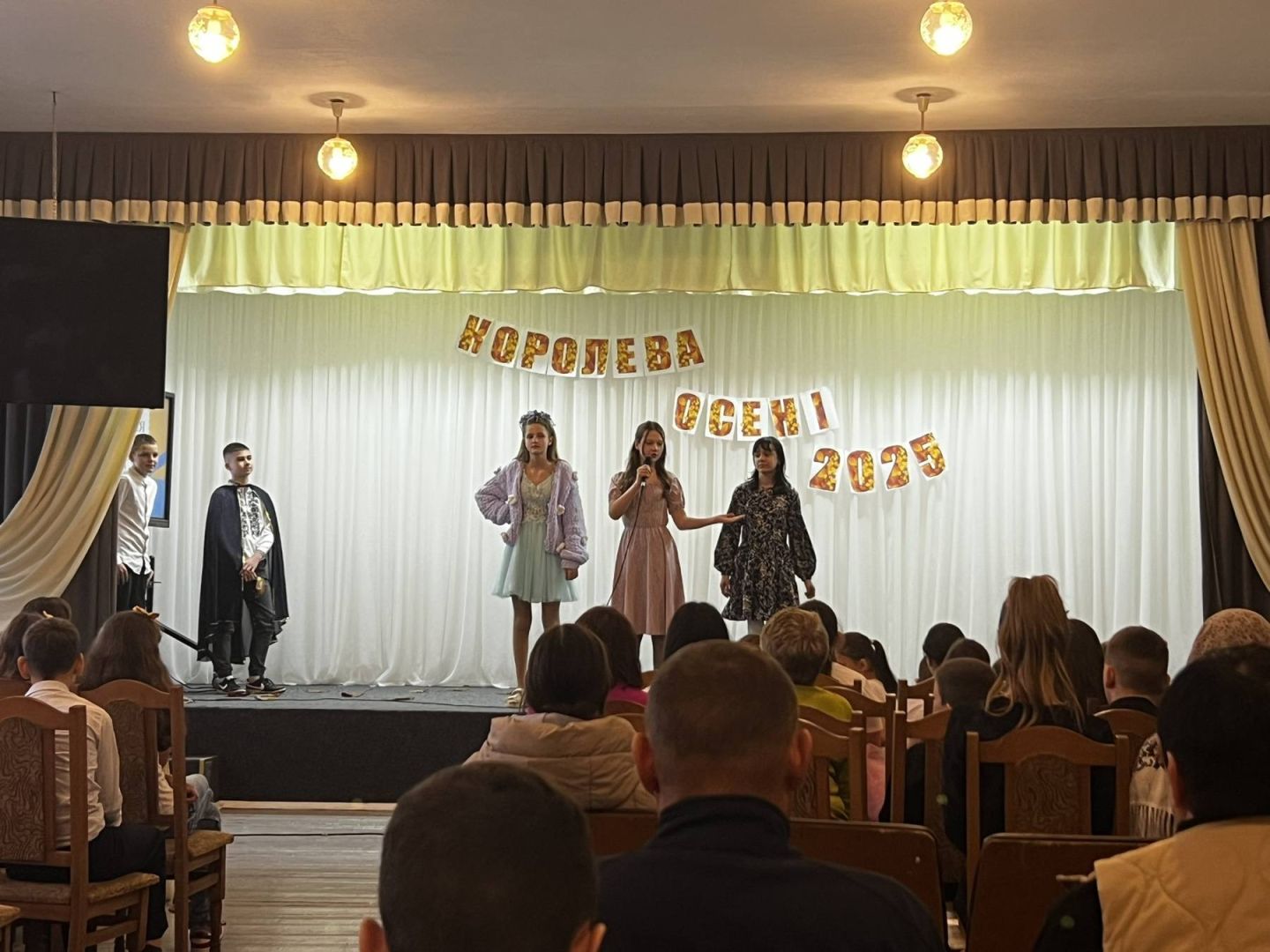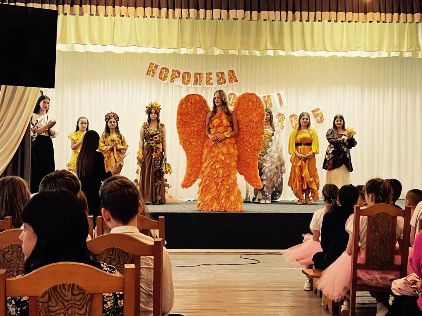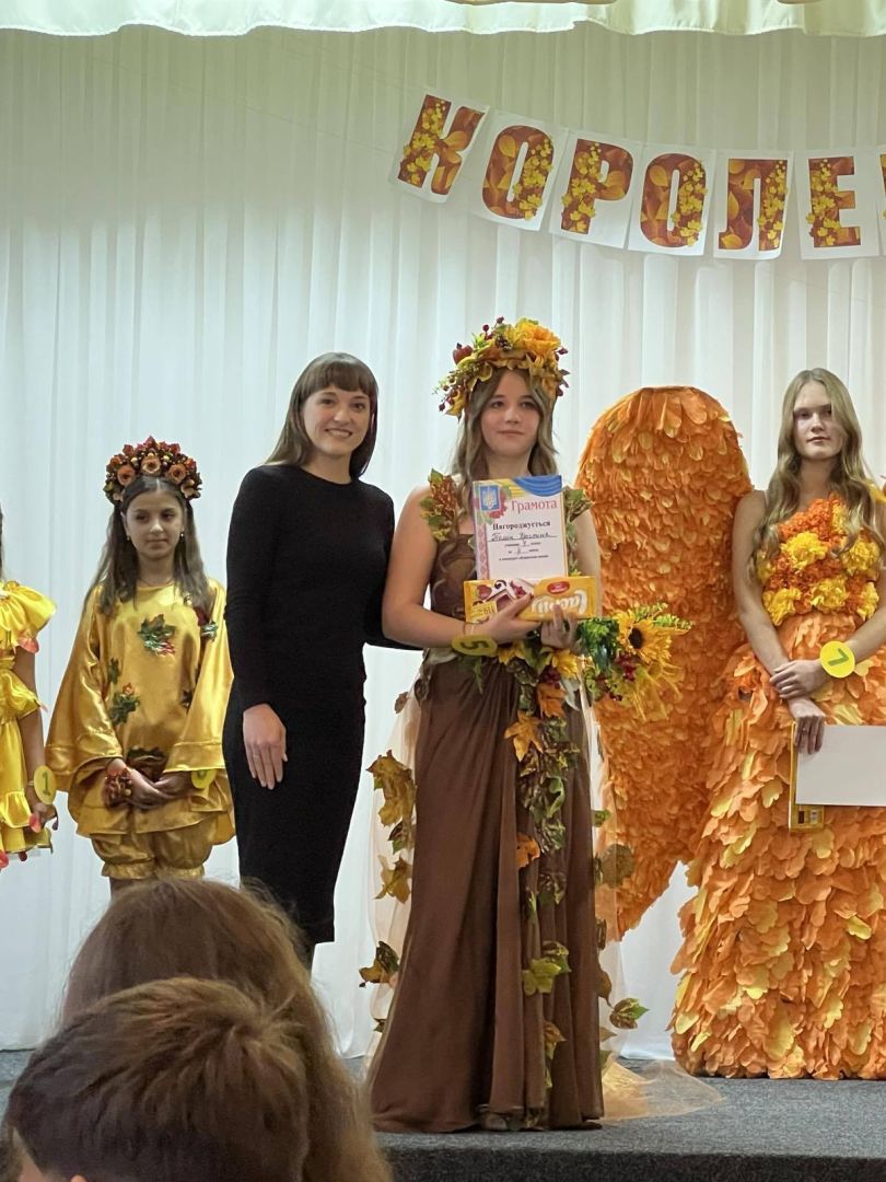 На знак вдячності за її дари в нашому закладі відбулося гарне свято - "Королева осені 2025", в якому брали участь учні 5-11-х класів. Конкурсно-розважальна програма складалася з 5-ти завдань: Знайомство ", "Етикет ", вікторина "Ерудит", "Мої таланти", "Модельєр". Конкурсантки ретельно готувалися. Їм допомагали їхні однокласники, класні керівники, педагог-організатор Руснак Н.В., вчитель трудового навчання Бобик Л.М. Всі учасниці гідно виступили, продемонструвавши всім присутнім граційність, ерудицію, свої здібності та таланти. Гран-прі - титул "Королева осені" виборола учениця 10-го класу Гончар Валерія, 1 місце - учениця 5-го класу Палій Ольга, 2 місце - учениця 7-го класу Гуцуцура Софія, учениця 9-го класу Томін Крістіна, учениця 6-го класу Батовська Олена, 3 місце - учениця 11-го класу Пінчук Софія, учениця 8- Б класу Пістружак Даша.