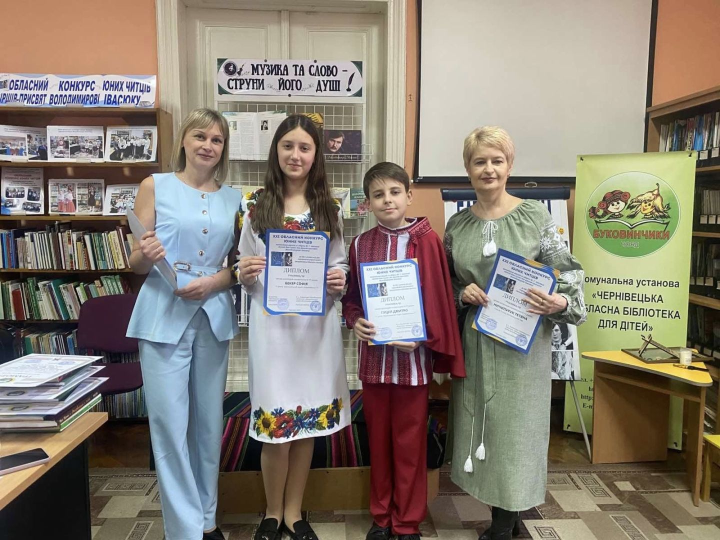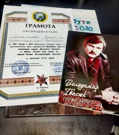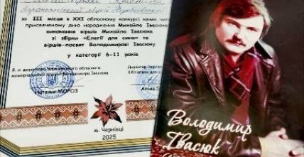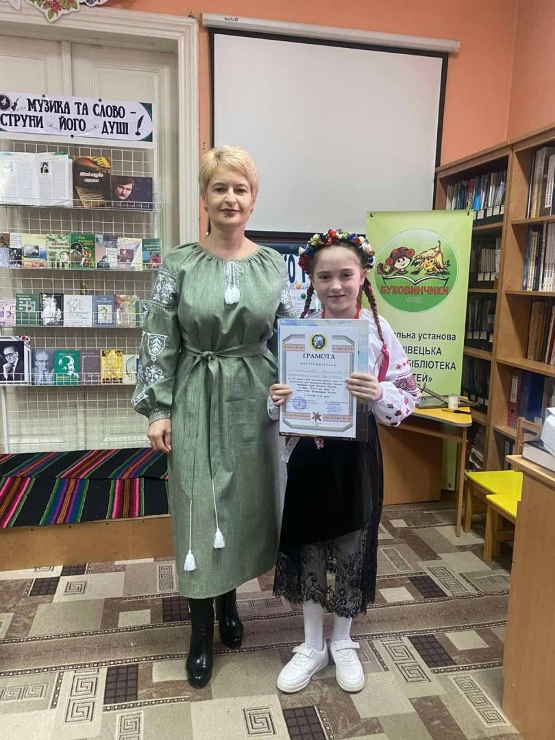 Вітаємо ученицю 3-го класу Матейцеву Крістіну та учня 5-го класу Гуцула Дмитра учасників щорічного конкурсу юних читців віршів-присвят Володимиру Івасюку, який відбувся в Чернівецькій обласній бібліотеці. Даний захід був присвячений 108-ї річниці від дня народження українського письменника, фольклориста, педагога, громадського та культурного діяча Михайла Григоровича Івасюка.